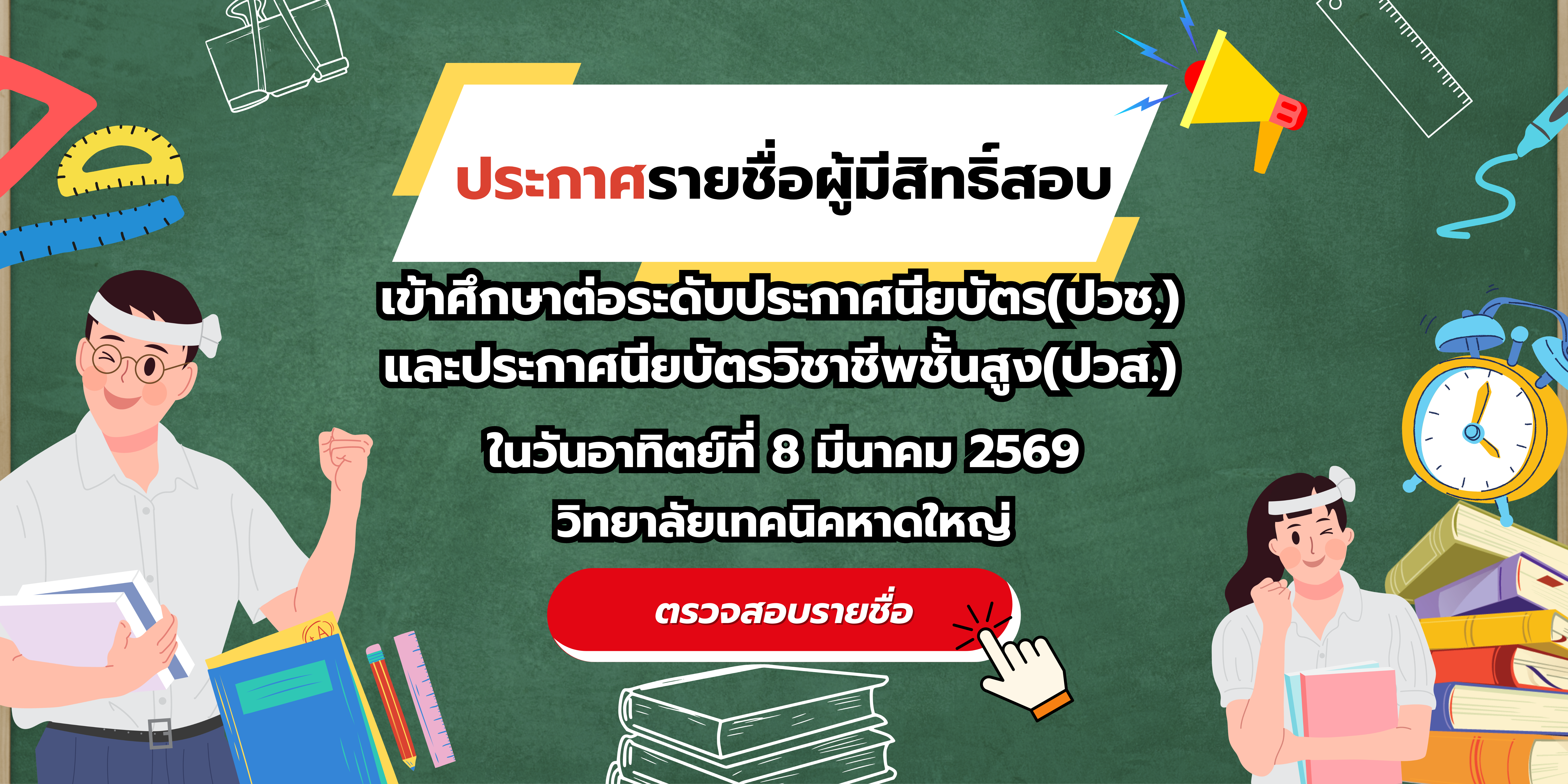 ประกาศรายชื่อนักศึกษาที่มีสิทธ์สอบ V-NET ระดับ ปวช.3 และปวส.2